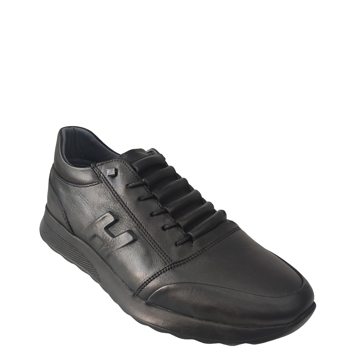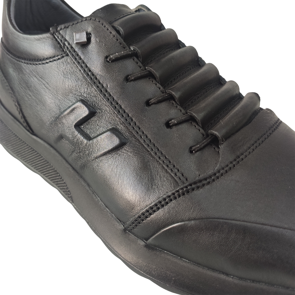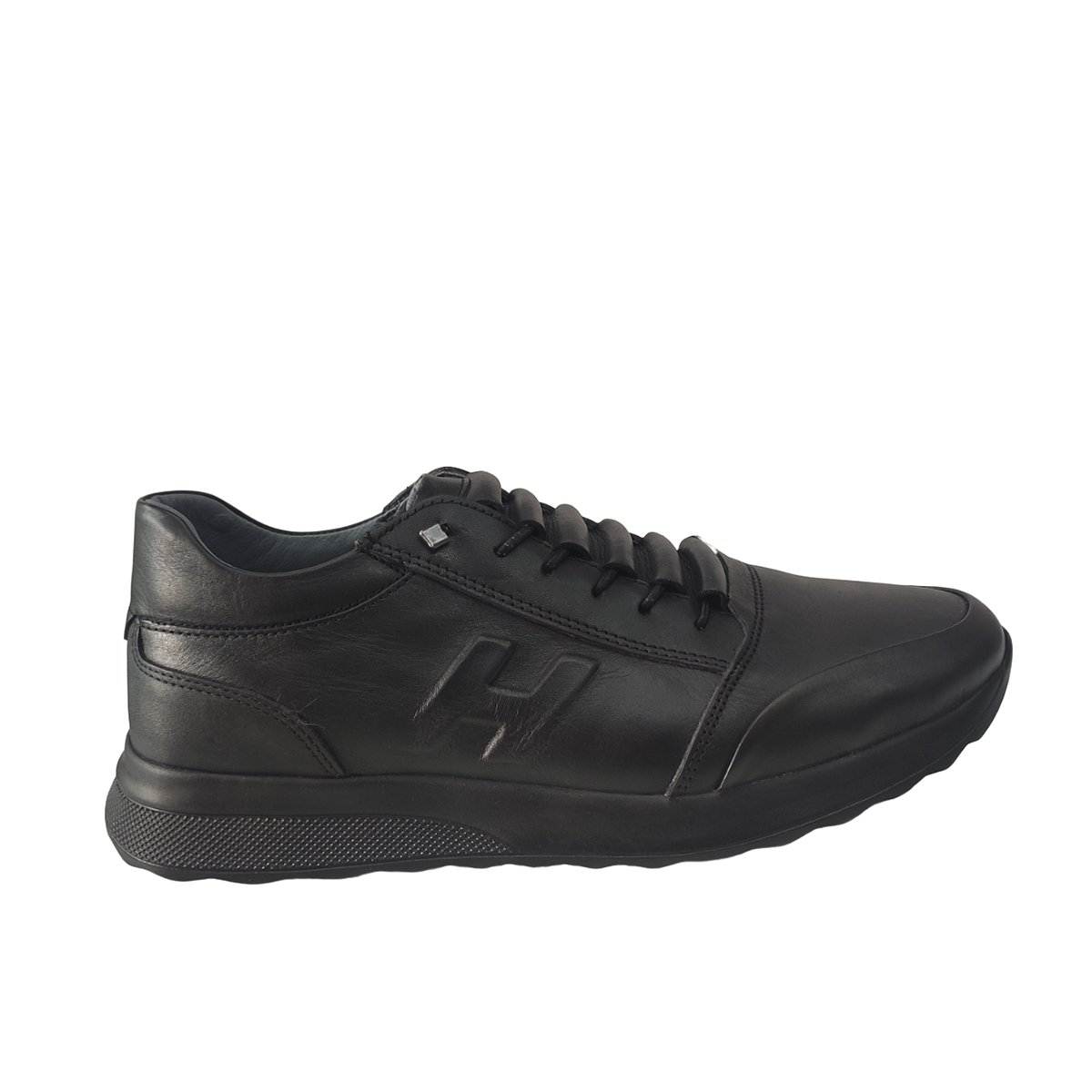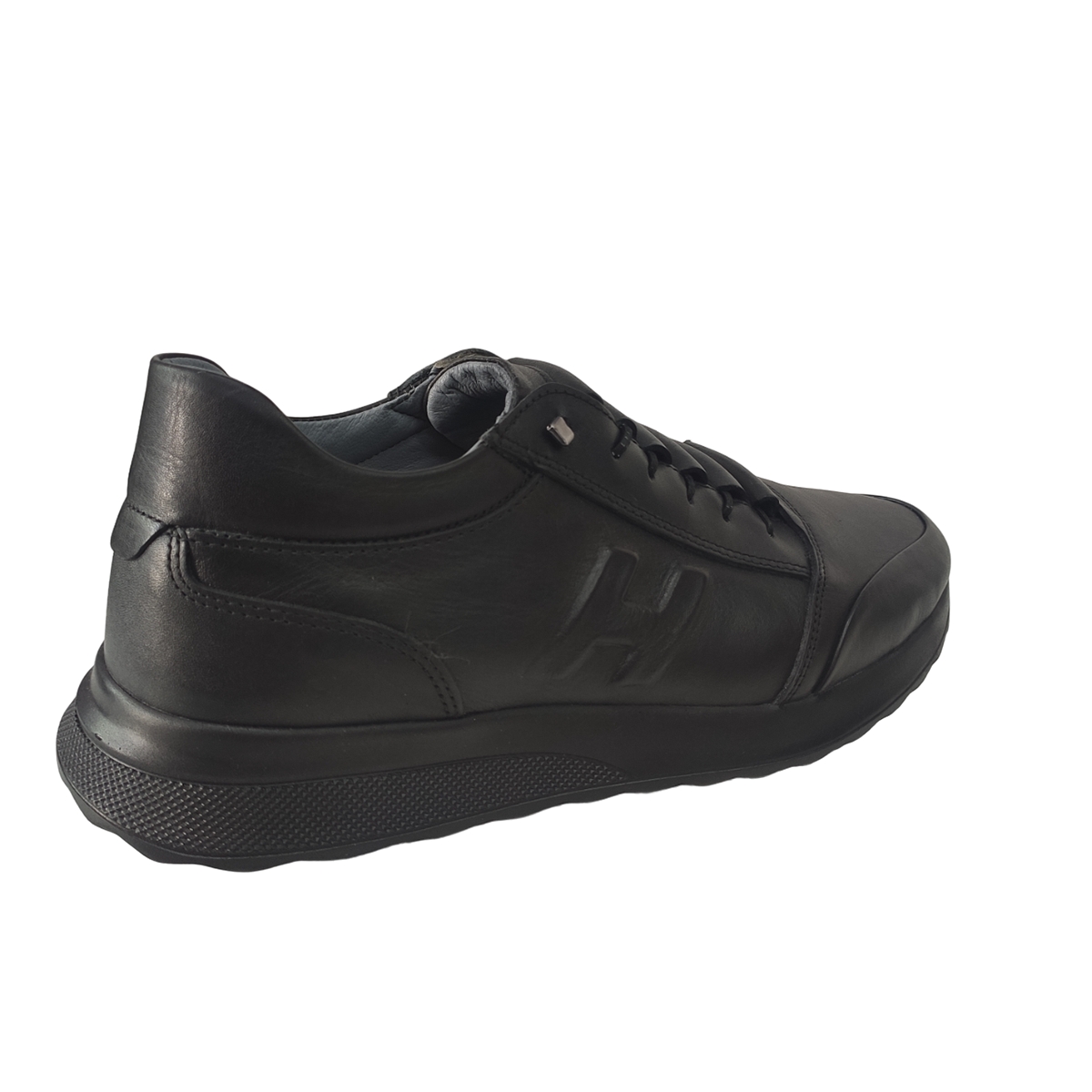 Ανδρικό δερμάτινο μαύρο RENZO, εξαιρετικής ποιότητας για άνετο και ξεκούραστο περπάτημα.