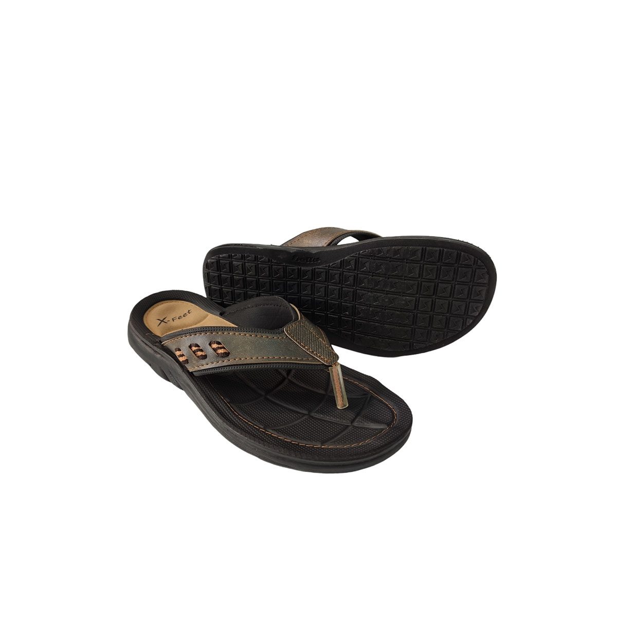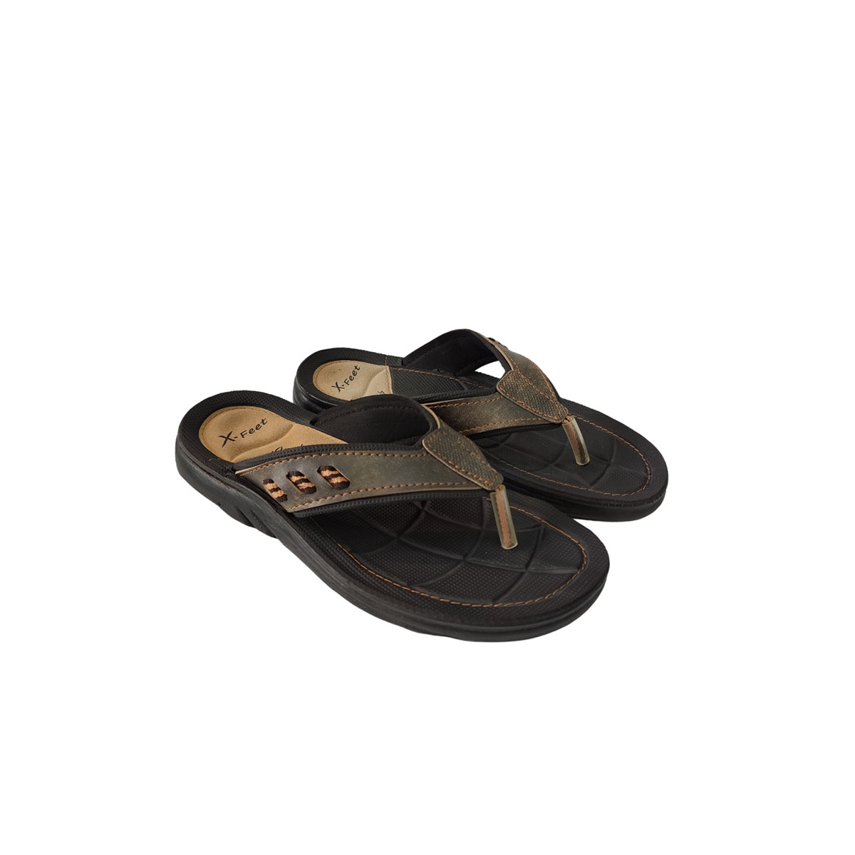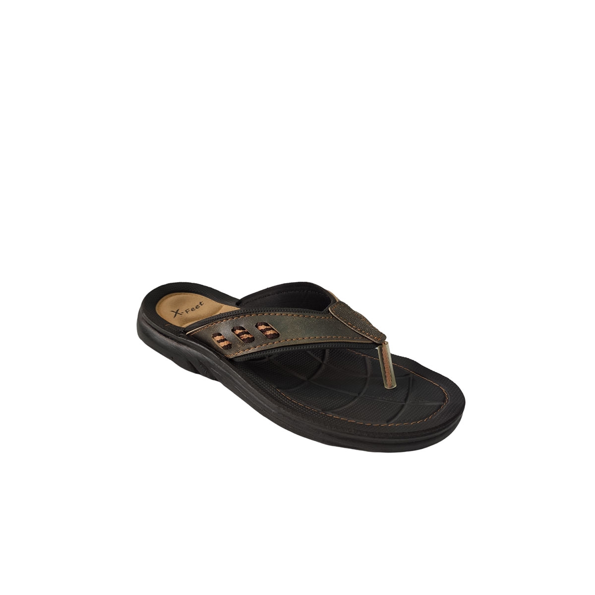 Ανδρική καλοκαιρινή δίχαλη παντόφλα X-FEET σε καφέ χρώμα Ελληνικής Κατασκευής με συνθετικό δέρμα το πάνω μέρος με δερμάτινο πάτο. Ανατομικού σχεδιασμού σόλα και φτιαγμένη από καουτσούκ για μεγαλύτερη ευλυγισία και άνεση στο περπάτημα. Ιδανική παντόφλα για τις καλοκαιρινές εξορμήσεις, την παραλία αλλά και για τις εξόδους σας.