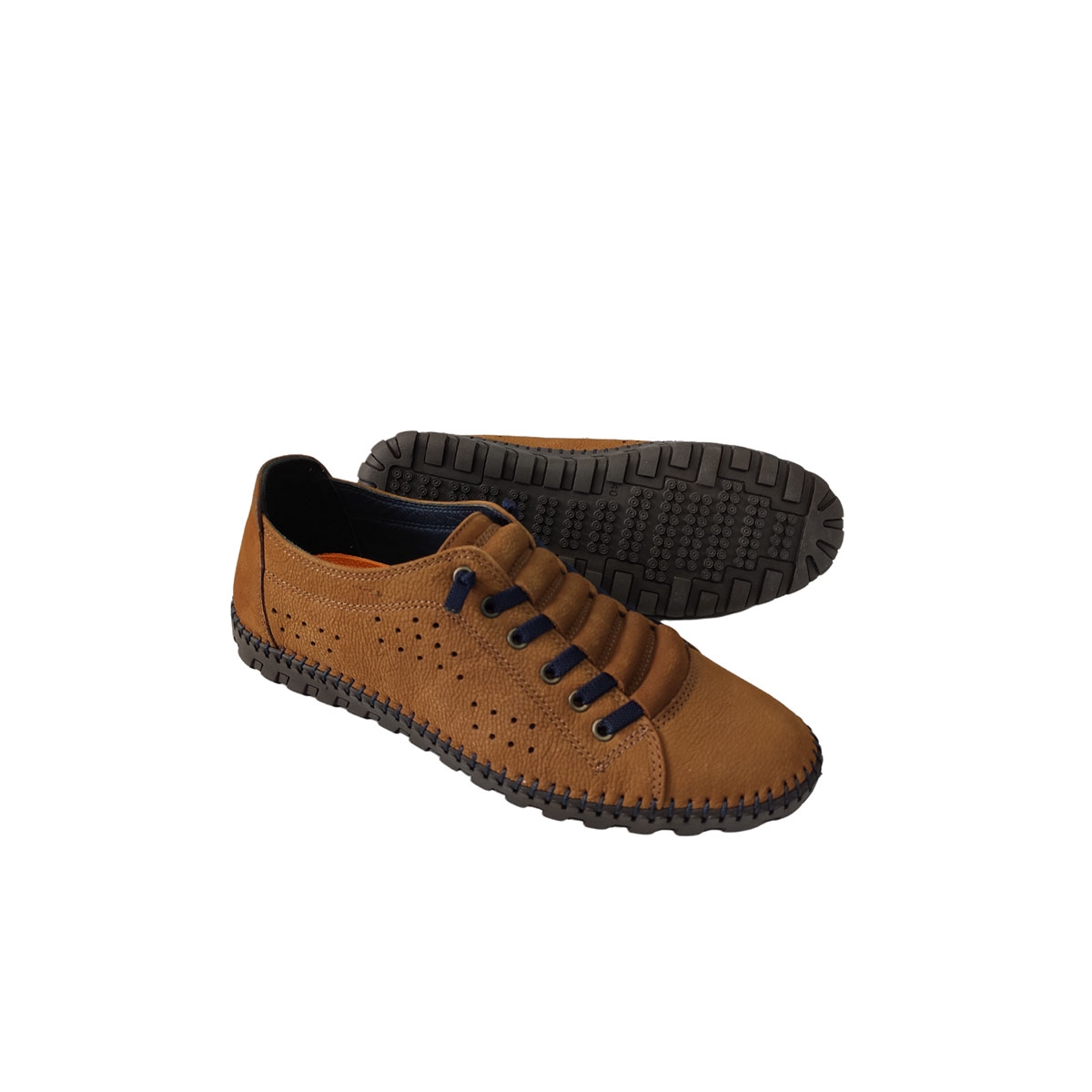 Ανδρικό ανατομικό δερμάτινο ταμπά AEROSTEP με σαμουά δέρμα η επάνω πλευρά και με μπλέ λαστιχάκι ελληνικής κατασκεύης, εξαιρετικής ποιότητας για άνετο και ξεκούραστο περπάτημα.