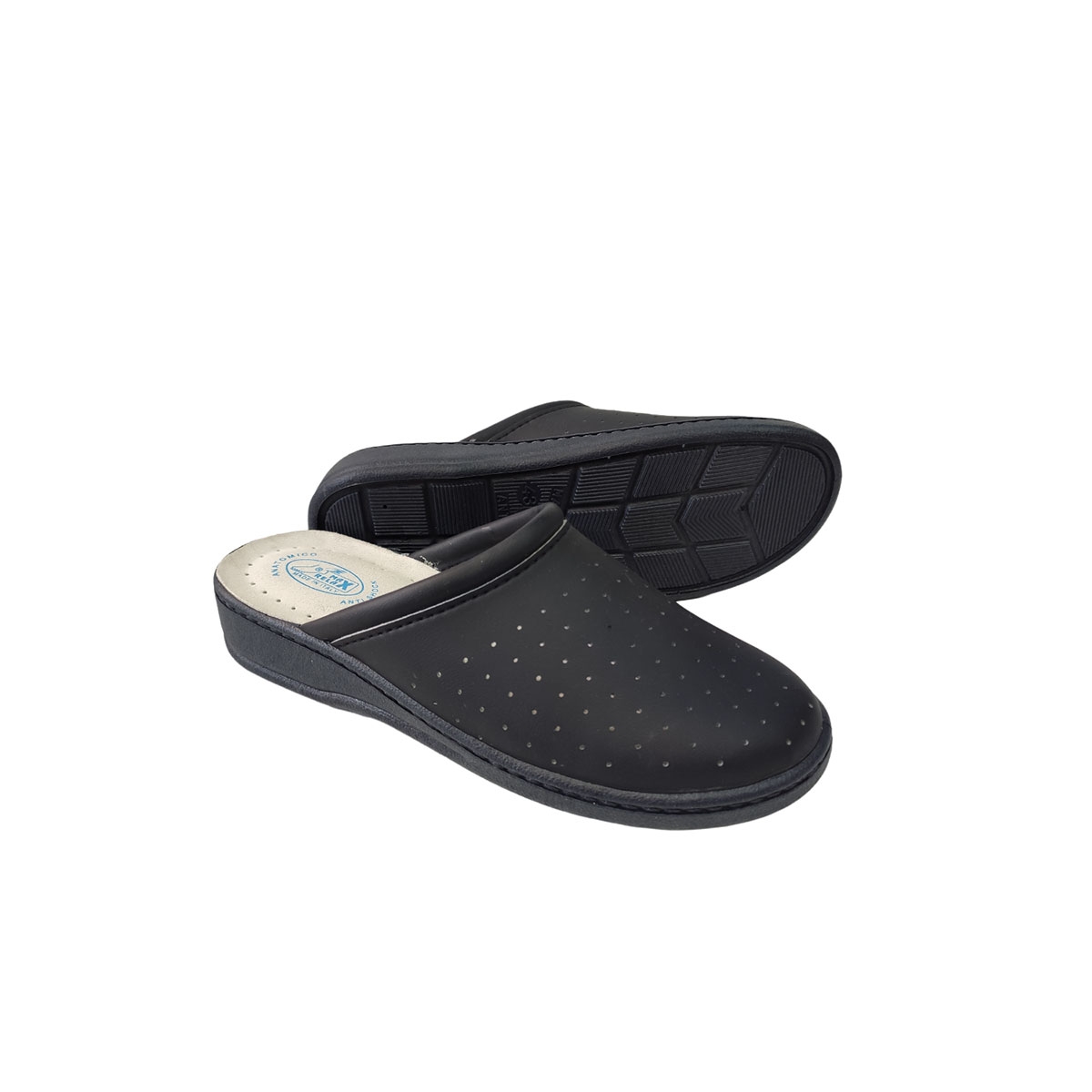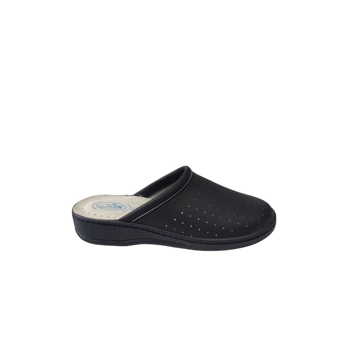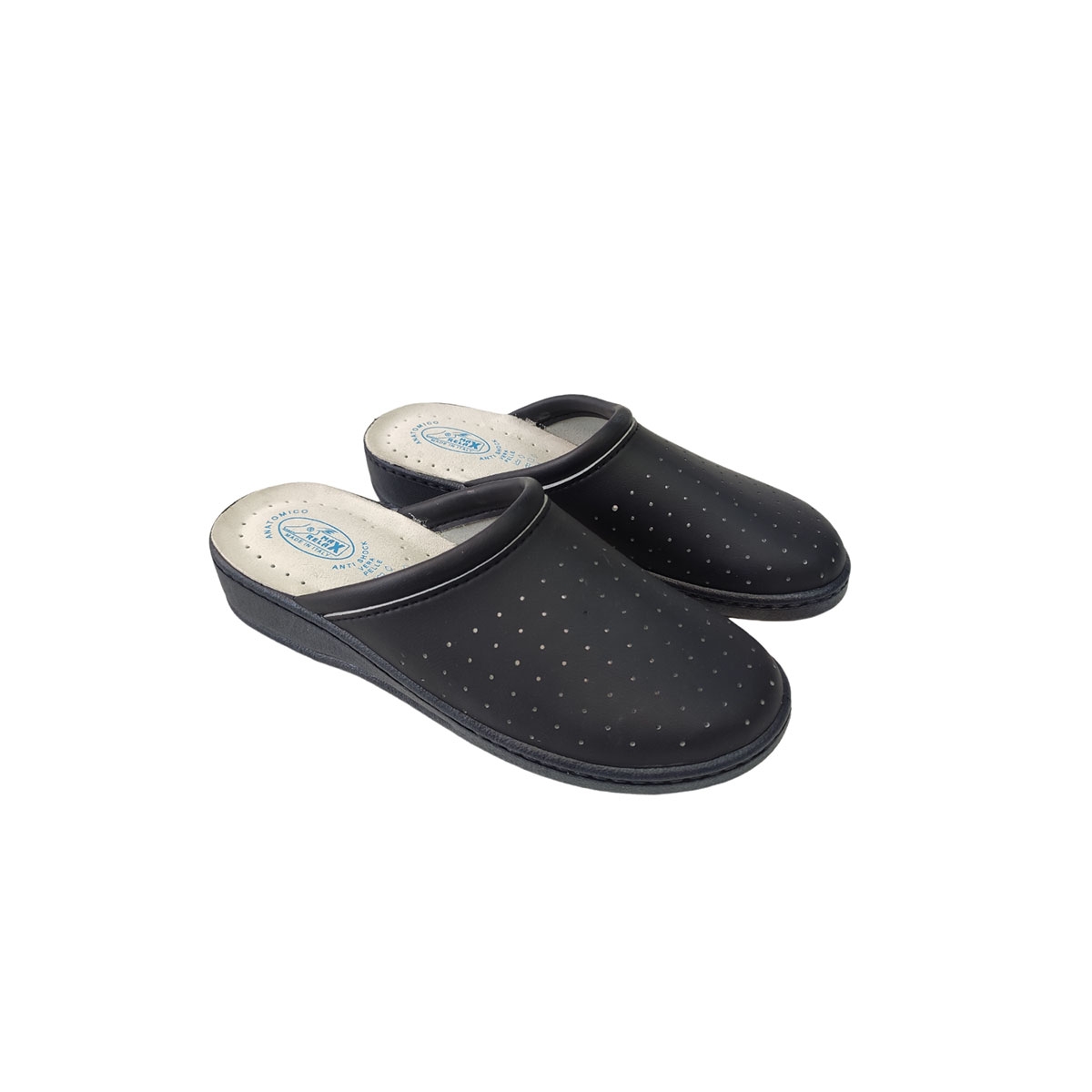 Sambo of the company MAX RELAX, ideal choice for cases where the work requires long hours of standing such as work in professional fields of care, cuisine and catering. Made of synthetic leather that does not allow the foot to sweat and have an anatomical sole for comfortable walking.