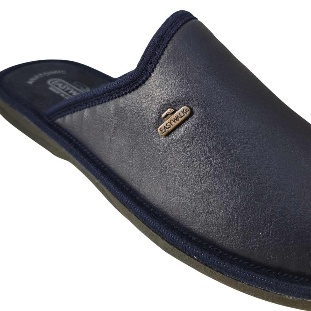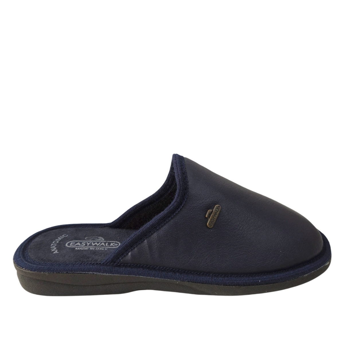 Ανδρική ανατομική παντόφλα EASYWALK σε μαύρο χρώμα απο οικολογικό - συνθετικό δέρμα και υφασμάτινο πάτο. Με μοντέρνο σχέδιο ιδανική για τις κρύες μερες του χειμώνα.