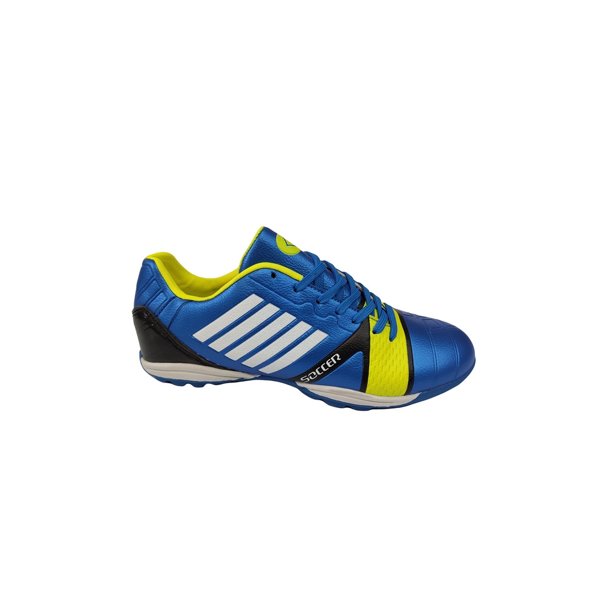 Soccer shoe SOCCER made of soft synthetic on the upper and tied with laces.