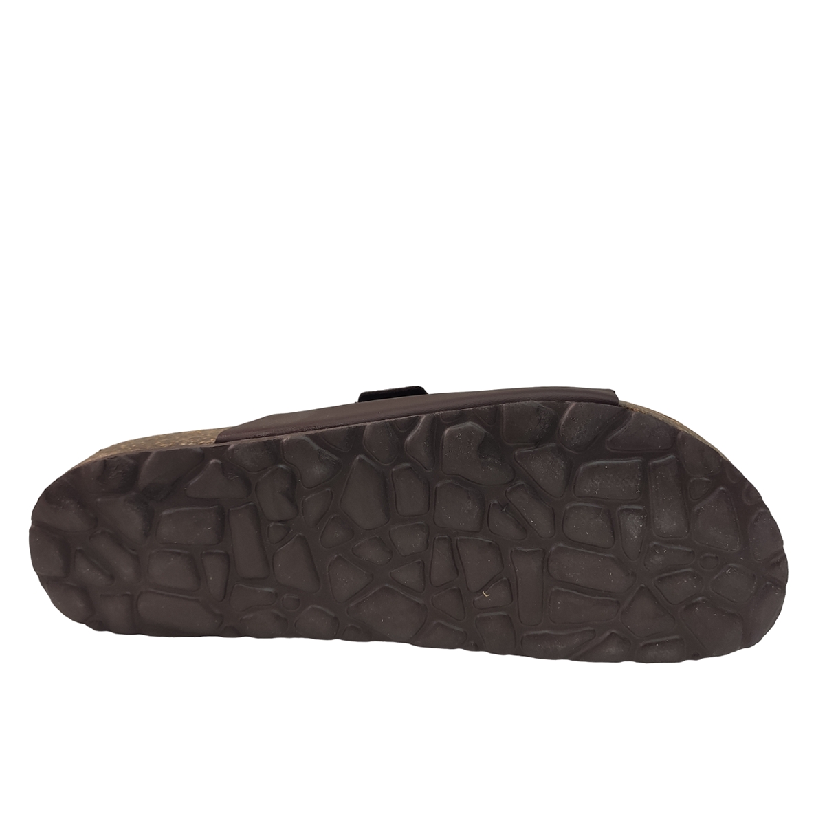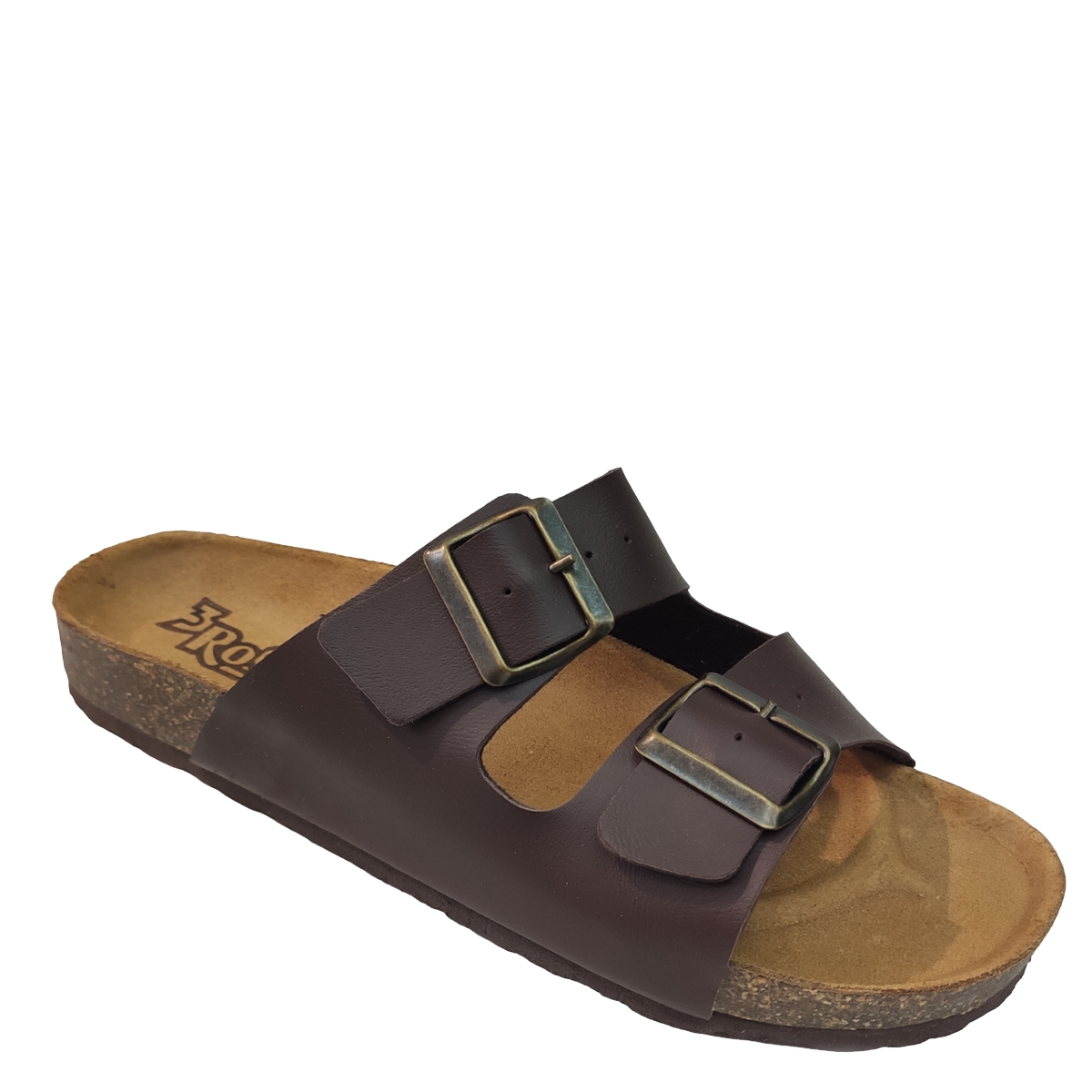 Ανδρική παντόφλα 3 ROSE απο οικολογικό δέρμα σε καφέ χρώμα. Διαθέτει λουράκια για να αυξομειώνεται η ένταση στο κουτουπιέ και να το ρυθμίζεται όπου θέλετε. Με δερμάτινο αναπαυτικό πάτο που θα σας χαρίσει ξέγνιαστες βόλτες.