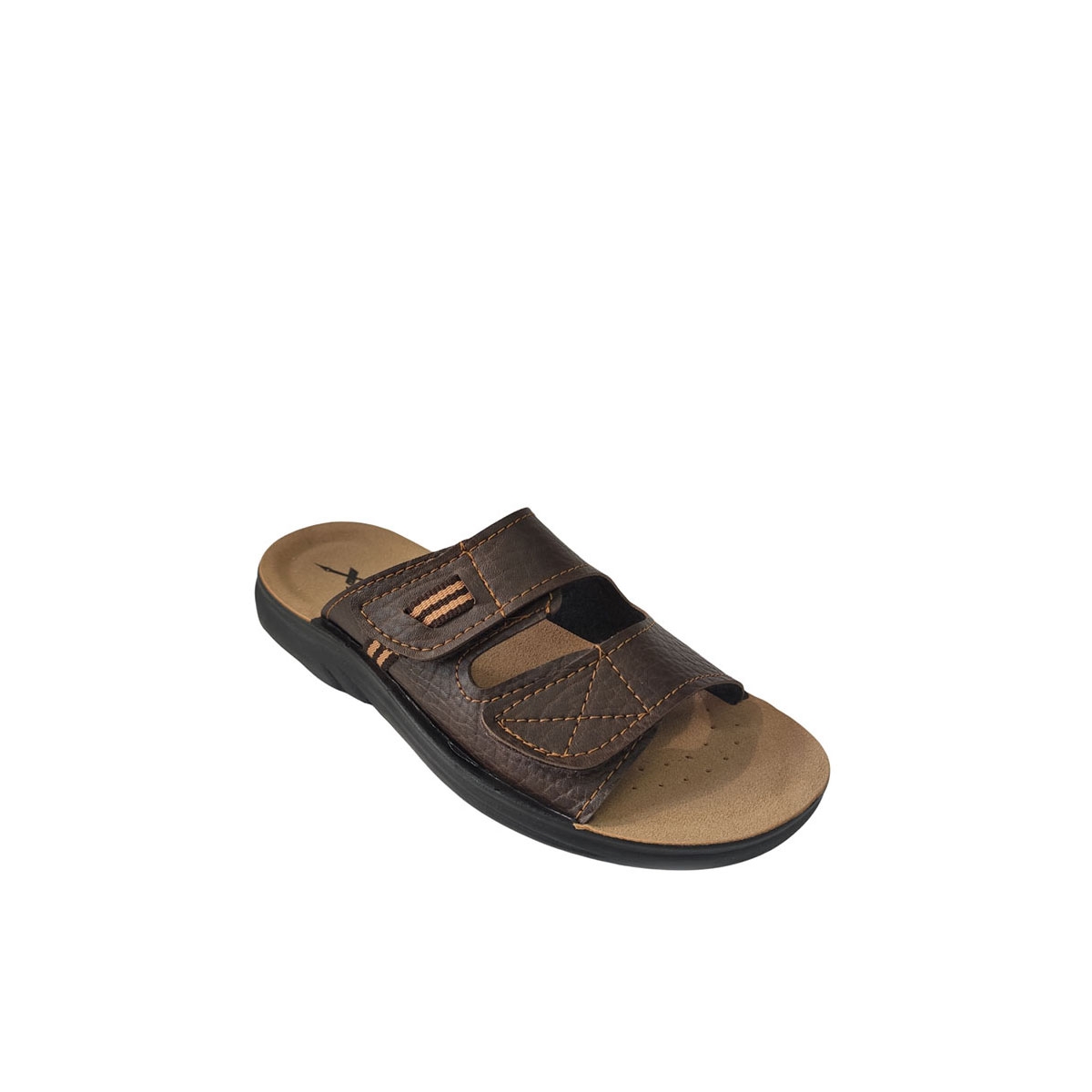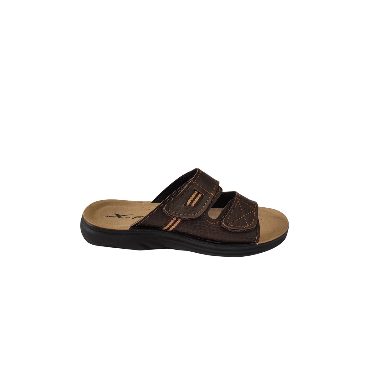 Ανδρική παντόφλα X-FEET Ελληνικής Κατασκευής  με αυτοκόλλητο απο συνθετικό δέρμα ανετη και ξεκούραστη στην εφαρμογή,με μεγάλη άντοχη.