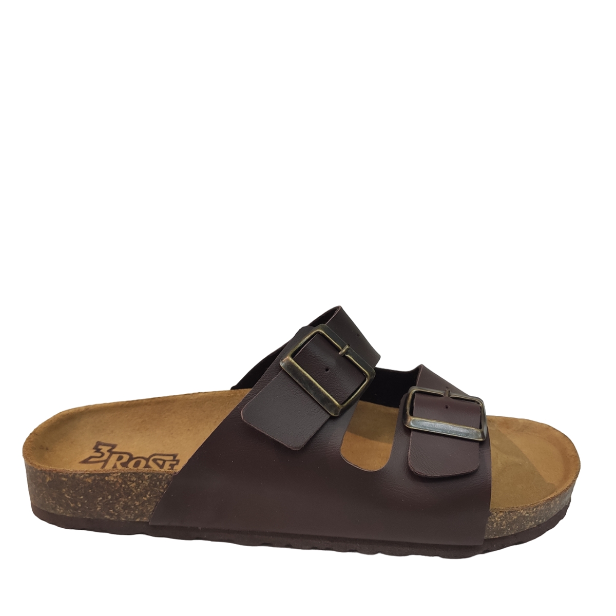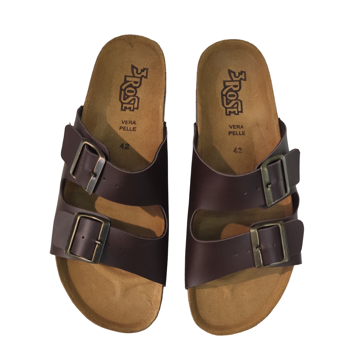Ανδρική παντόφλα 3 ROSE απο οικολογικό δέρμα σε καφέ χρώμα. Διαθέτει λουράκια για να αυξομειώνεται η ένταση στο κουτουπιέ και να το ρυθμίζεται όπου θέλετε. Με δερμάτινο αναπαυτικό πάτο που θα σας χαρίσει ξέγνιαστες βόλτες.