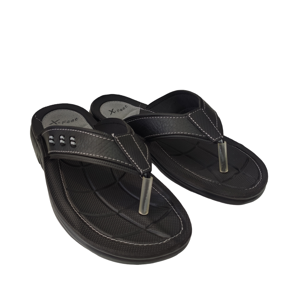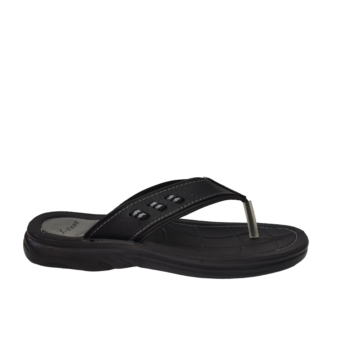 Ανδρική καλοκαιρινή δίχαλη παντόφλα X-FEET σε μαύρο χρώμα Ελληνικής Κατασκευής με συνθετικό δέρμα το πάνω μέρος με δερμάτινο πάτο. Ανατομικού σχεδιασμού σόλα και φτιαγμένη από καουτσούκ για μεγαλύτερη ευλυγισία και άνεση στο περπάτημα. Ιδανική παντόφλα για τις καλοκαιρινές εξορμήσεις, την παραλία αλλά και για τις εξόδους σας.