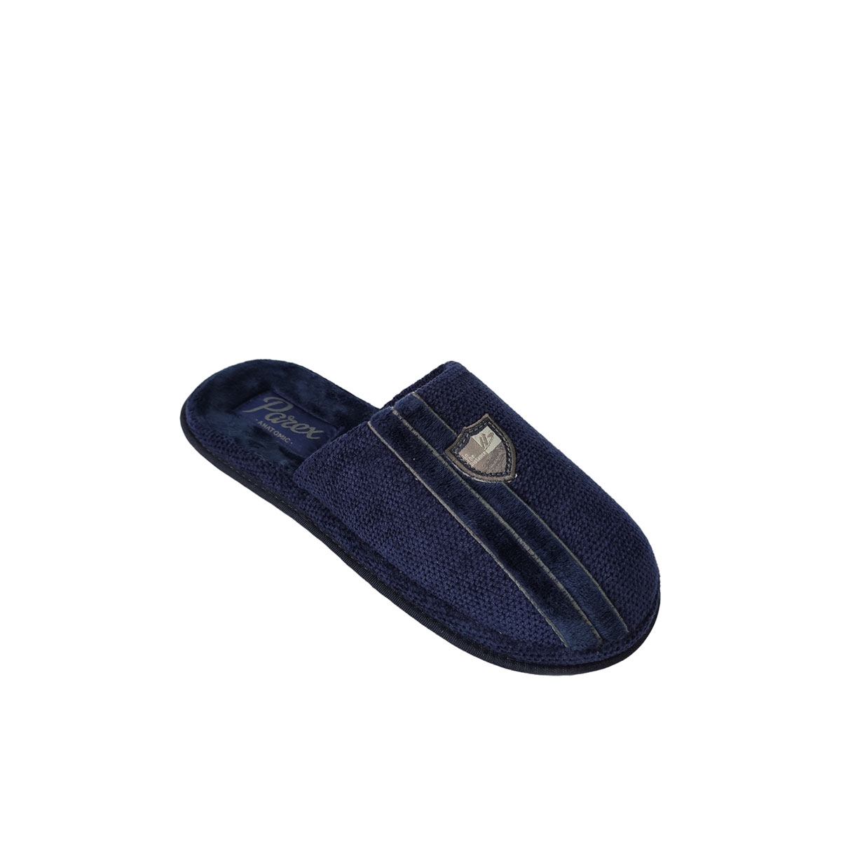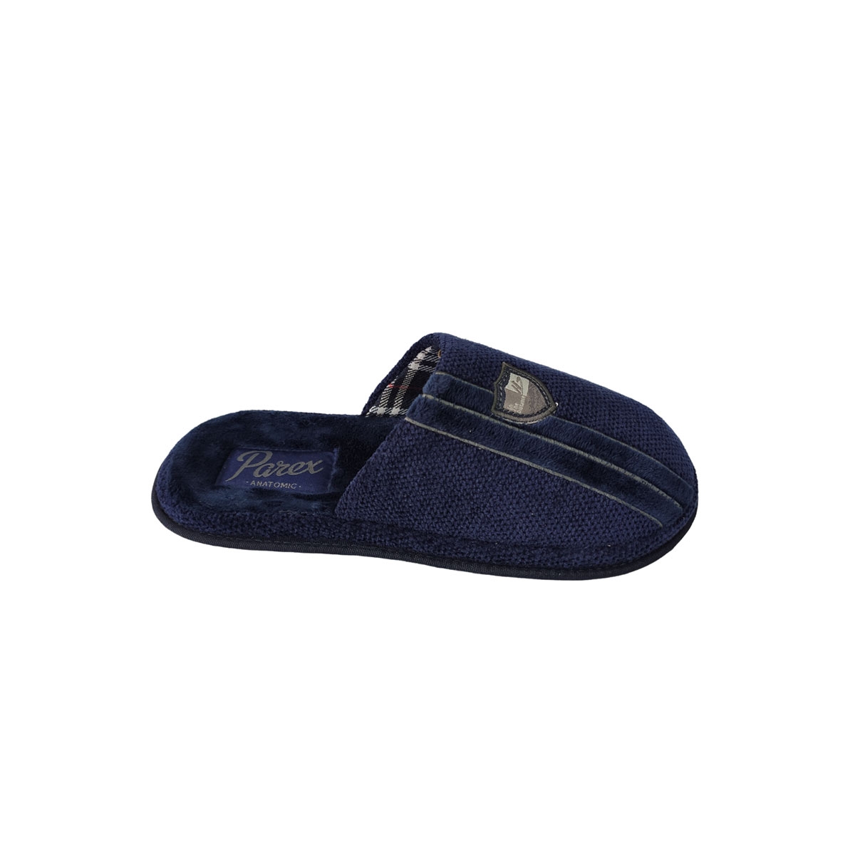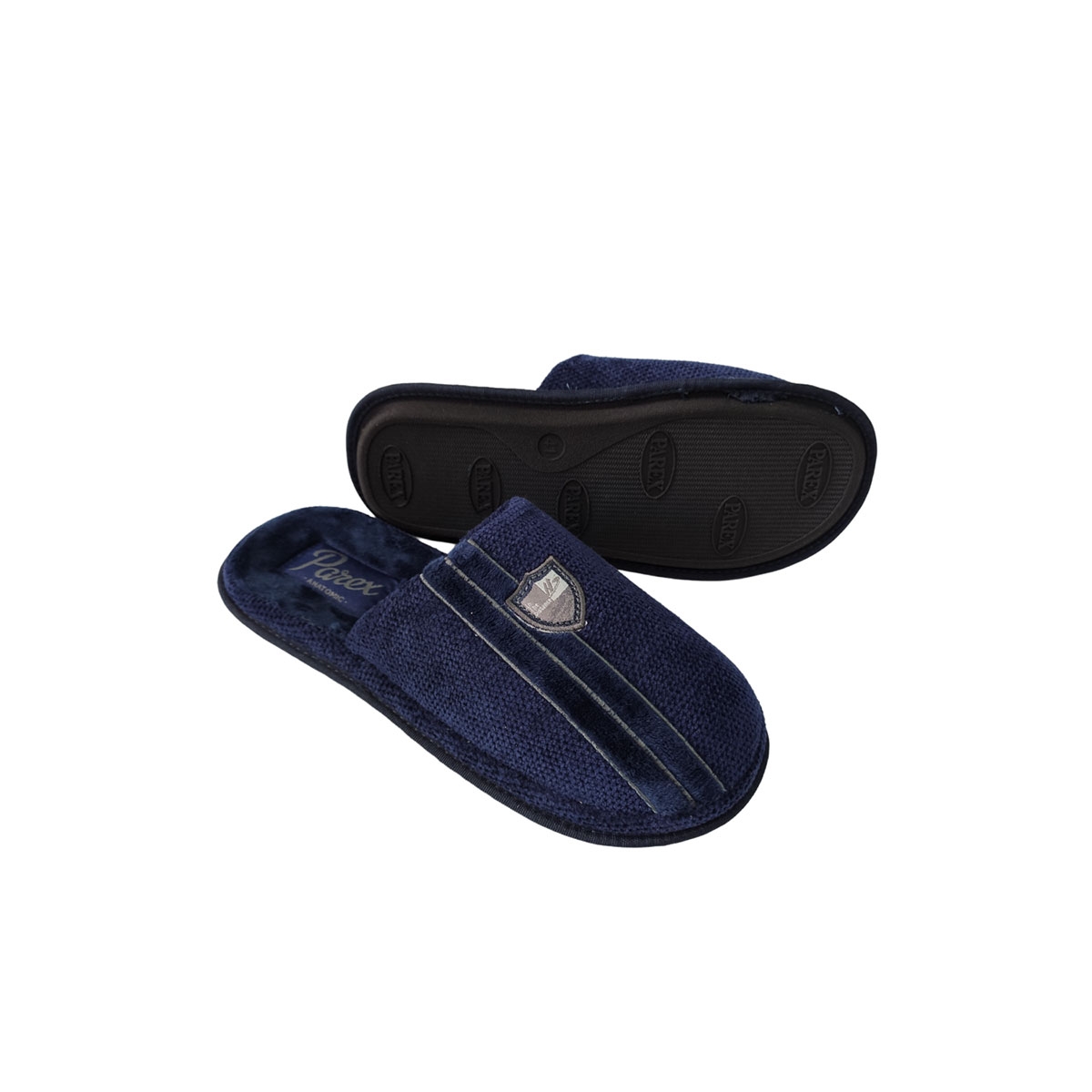 Ανδρική παντόφλα PAREX υφασμάτινη με κεντημένο σχέδιο στο πάνω μέρος και αναπαυτικό πάτο με ανατομικές προδιαγραφές.Κλασικό σχέδιο για όλα τα γούστα.