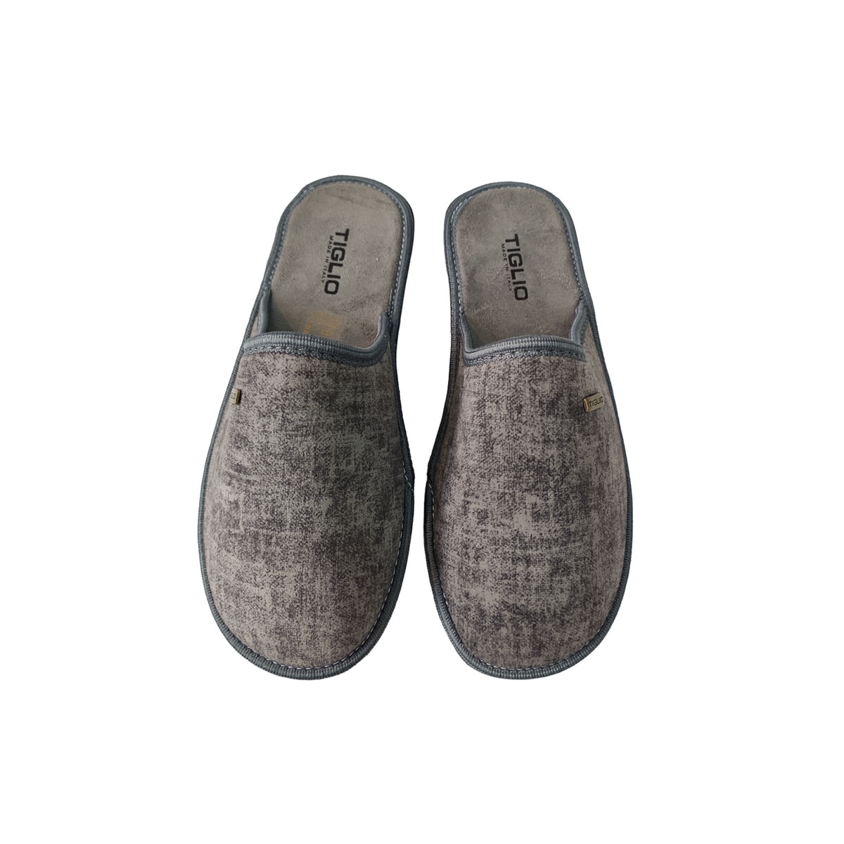 Ανδρική χειμερινή παντόφλα της εταιρείας TIGLIO Ιταλικής κατασκευής. Έχει υφασμάτινο πάτο και η φόδρα της είναι κατασκευασμένη από ποιοτική τσόχα. Το πάνω μέρος είναι από απαλό βελουτέ ύφασμα. Έχει σταθερή και αντιολισθητική σόλα. Η φόρμα της είναι κανονική.