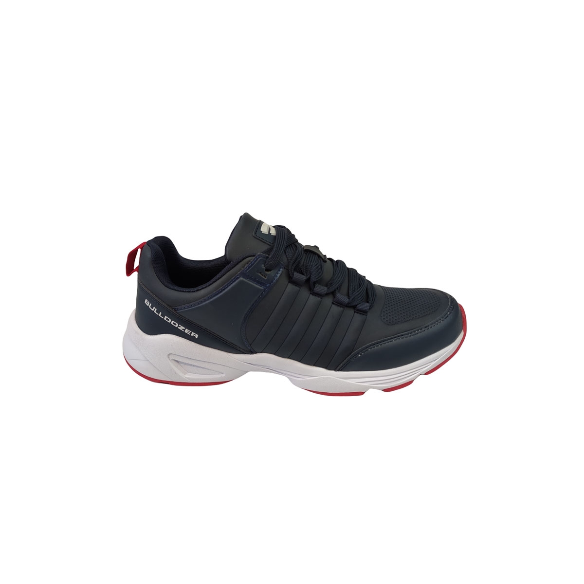 Ανδρικό αθλητικό της εταιρείας BULLDOZER, σε μπλε-κόκκινο χρώμα, εξωτερικά κατασκευασμένο από εξαιρετικής ποιότητας συνθετικό  δέρμα, διαθέτει κορδόνια, πάτο επενδυμένο με latex και αντιολισθητική σόλα από πολυουρεθάνη για σταθερό περπάτημα. Προσφέρει άνεση σε κάθε σας βήμα!