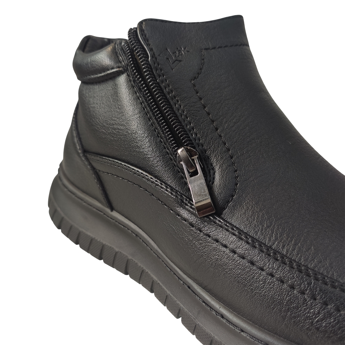 Ανδρικό μποτάκι Zakshoes σε μαύρο χρώμα προστατεύει τα πόδια σας κατά την διάρκεια του χειμώνα. Προσαρμόζεται στη φόρμα του ποδιού παρέχοντας επιπλέον άνεση. Είναι ανθεκτικό στην καθημερινή χρήση με διάρκεια στο χρόνο.